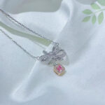 The highlight of this elegant necklace is a 0.25-carat natural pink diamond necklace, cushion cut to enhance its innate beauty. Pink diamonds are highly coveted for their rarity and romantic hue, symbolizing love and elegance. The cushion cut, known for its rounded corners and larger facets, maximizes the stone’s brilliance and depth of color. This exquisite pink diamond is sure to captivate and charm with its delicate yet striking appearance.
