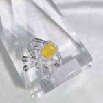 At the heart of this ring lies the mesmerizing Natural Fancy Yellow Diamond. Renowned for its captivating hue, reminiscent of the golden glow of sunshine, each diamond is certified for its exceptional quality and clarity, ensuring that its beauty transcends time. With a VS (Very Slightly Included) certification, these diamonds exhibit remarkable purity and brilliance, capturing the eye with every glimmer.
