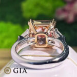 Set in a meticulously crafted ring, the natural pink diamond takes center stage, surrounded by a halo of sparkling white diamonds that accentuate its beauty and amplify its presence. The band, crafted from lustrous platinum or gleaming gold, serves as a perfect complement to the diamond, adding to the ring’s luxurious appeal.